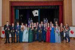 Týdny a měsíce příprav na XXI. školní ples vyvrcholily v sobotu 27. 4. 2024 v Kulturním domě v Chyškách. Úderem sedmé hodiny večerní oficiálně započala společenská událost sezóny, která se nesla v duchu magie a iluzí. Žáci deváté třídy nacvičili předtančení v rytmu valčíku na tóny melodie, která už měla slovo “magický” v názvu. Jejich taneční umění vzápětí vystřídalo živelné číslo tanečního kroužku pod vedením paní učitelky Průšové a její dcery Aničky, které během tří skladeb doprovázela skutečná kouzla a magie. Než si přítomní stihli vydechnout a občerstvit se za tónů hudby skupiny Elizabeth, která již tradičně školní ples provázela svou produkcí, byl tu slavnostní nástup deváté třídy a stužkování. Paní ředitelka představila postupně jednotlivé žáky a poté s třídní učitelkou žáky ostužkovaly. V čase do posledního vystoupení si hosté vyzvedli své výhry v malé soutěži o ceny, která byla letos opravdu bohatá. Pomyslným zlatým hřebem večera bylo “půlnoční” překvapení, při němž třída v zhasnutém sále předvedla světelnou show na píseň Shakiry Waka waka. Ovace a nadšení diváků nebraly konce a deváťáci si mohli spokojeně oddechnout, že se jim ples vydařil na jedničku s hvězdičkou. V jedenáct hodin proběhlo losování velké soutěže o ceny, z níž si mohli ti, kteří vlastnili šťastný lístek, odnést například wellness pobyty, elixíry pro zdraví, ba dokonce i prase. A pak už se jen slavilo, tančilo, zkrátka plesalo. To, že jsou deváťáci i jejich rodiče prima parta, se promítlo do celkové atmosféry plesu, která byla zkrátka kouzelná.