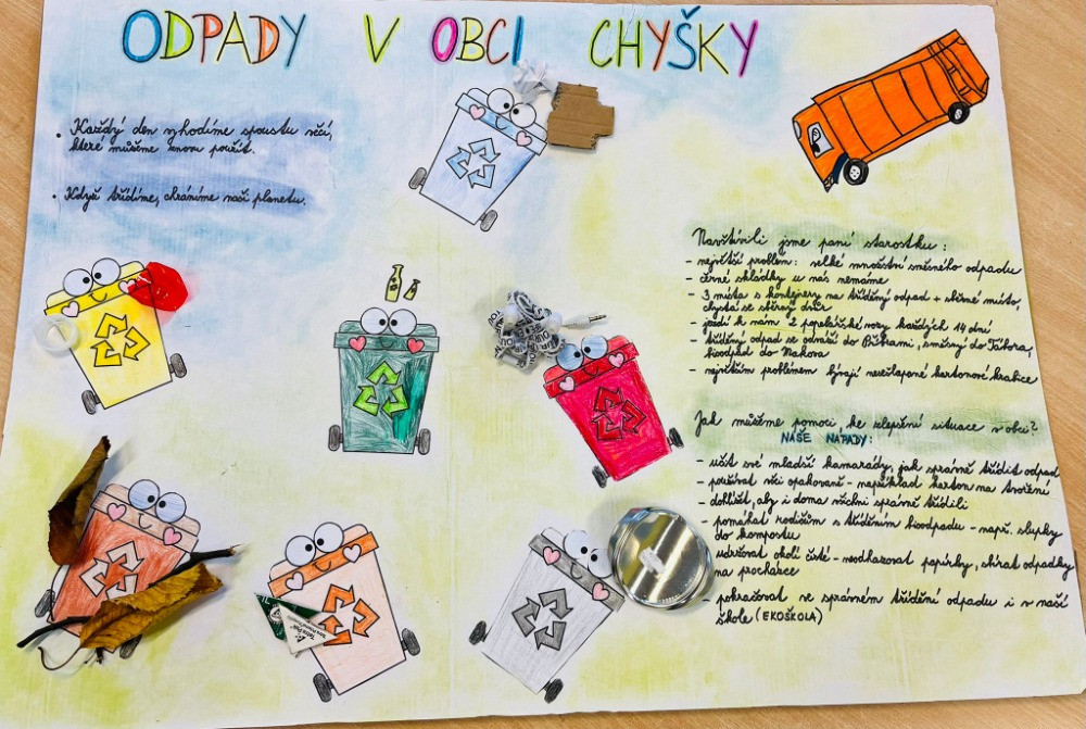 V rámci projektu Místní akční plány rozvoje vzdělávání ORP Milevsko IV se školní družina zapojila do zajímavého úkolu EVVO a má obec, zaměřeného na nakládání s odpady. Cílem bylo zjistit, jak naše obec s odpady hospodaří, kam se odváží a co můžeme udělat pro čistší a zdravější prostředí. Abychom se o tématu dozvěděli co nejvíce, vydali jsme se na návštěvu za paní starostkou. Děti si předem připravily vlastní otázky – zajímalo je například, kolik kontejnerů obec má, jak často se vyvážejí, kam putuje tříděný odpad nebo co se děje s bioodpadem. Paní starostka dětem trpělivě odpovídala a vysvětlila, jak celý systém nakládání s odpady funguje a jaké povinnosti má obec při zajišťování čistoty a odvozu. Po návratu do družiny jsme si všechno, co jsme zjistili, společně probrali a shrnuli. Děti přicházely s vlastními nápady, jak situaci v obci ještě vylepšit. Nakonec jsme se pustili do tvorby našeho projektu – velkého plakátu, na který děti sepsaly nejen všechny důležité informace, které se dozvěděly, ale také své nápady na zlepšení.