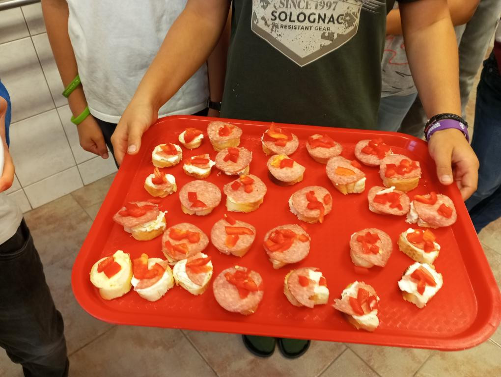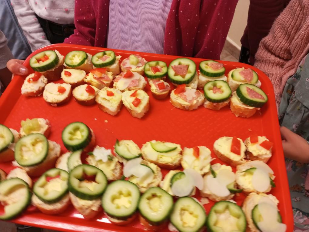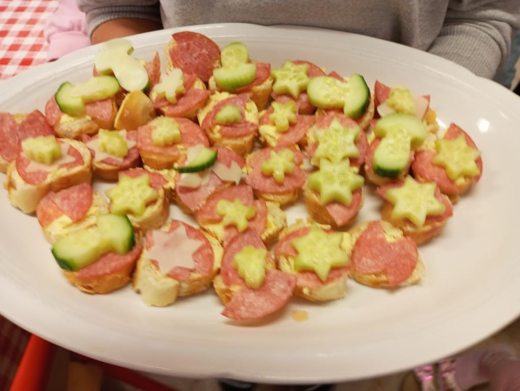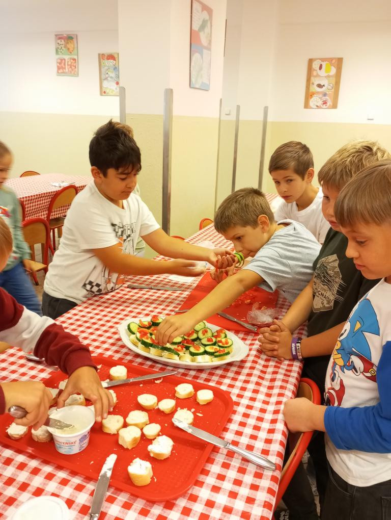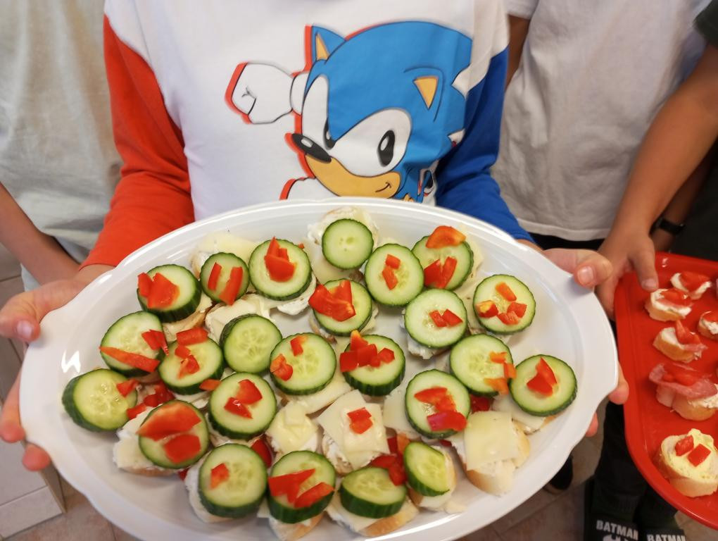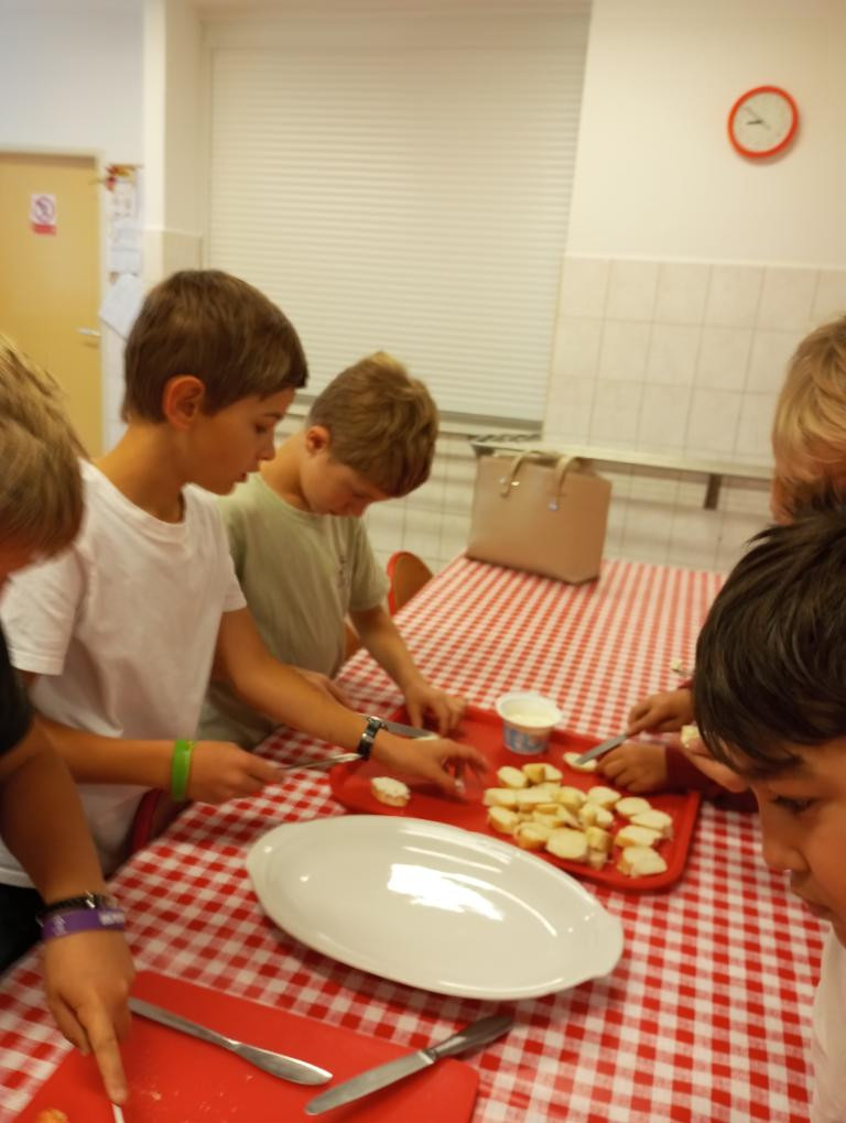 Dnes 1. 10. 2025 jsme vyráběli jednohubky. Byl to matematický projekt, kdy jsme se rozdělili na dvě skupiny a obdrželi peníze na nákup ingrediencí. Vytvořili jsme plán, co budeme kupovat, a odhadli cenu potravin.