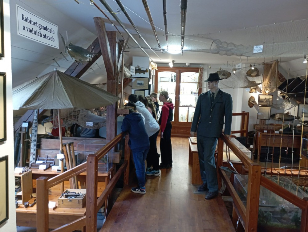 Další zastávkou byla Střední rybářská škola Vodňany, která je jediná svého druhu v České republice. Zde si účastníci exkurze v doprovodu studentů 2. ročníku prohlédli venkovní jezírko s prosklenou částí, celou řadu expozic zaměřených na rybí reprezentanty různých kontinentů a oblastí a rybářské muzeum. V závěru si žáci v kvízu ověřili, jak pozorně zajímavý výklad průvodců poslouchali. A uspěli na výbornou!