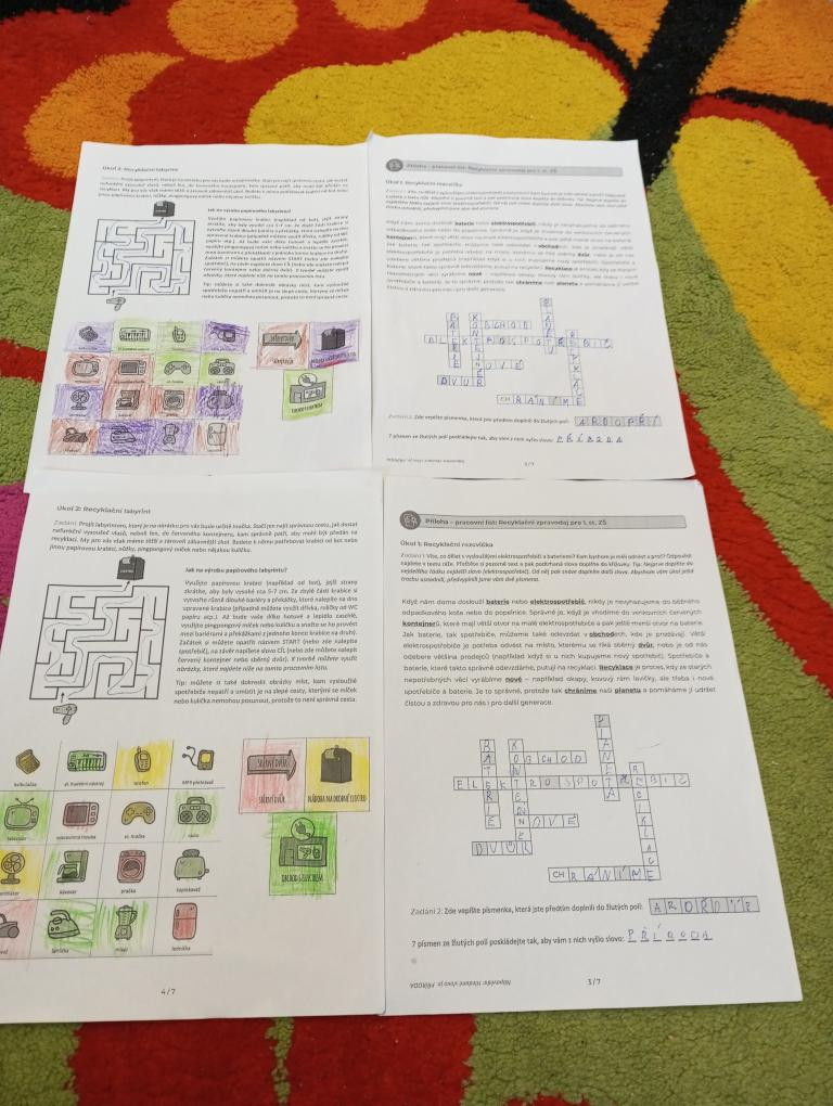 Žáci 3. třídy plnili první úkol Recyklohraní v tomto školním roce. Zaměřený byl na třídění elektroodpadu, seznámení s důležitostí zpětného odběru elektra, s možností úspory elektrické energie sledováním energetického štítku spotřebiče a tím i ochrany životního prostředí. Zároveň si připomněli Evropský týden recyklace baterií 8. – 14. září a Mezinárodní den elektroodpadu 14. října. Nejprve zhlédli motivační video, poté dali hlavy dohromady, rozdělili si úkoly, vyřešili pracovní listy s rébusy a křížovkami a za pomoci tabletů zjistili potřebné informace k tvorbě plakátů, které nakonec vystavili ve vestibulu školy, aby seznámili i ostatní děti a zaměstnance školy s důležitostí třídění odpadu. Celý úkol tvořili v rámci předmětů český jazyk, prvouka a výtvarná výchova, při kterých si žáci vyzkoušeli práci redaktora i zpravodaje zároveň. Práce je moc bavila a já je chválím za výbornou spolupráci a celkové provedení.