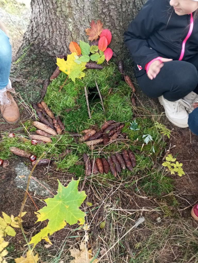 Příběh nešťastných skřítků děti oslovil, a proto se hned vydaly do lesa postavit malé domečky pro přespání v lese a doplnit první ztracené informace do Lesního deníku. Podzimní les je přivítal nádhernými barvami, děti poznávaly stromy i plody a ve škole do deníku doplnily i informaci o tom, proč se listy červenají.
