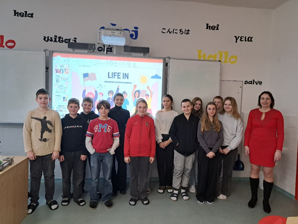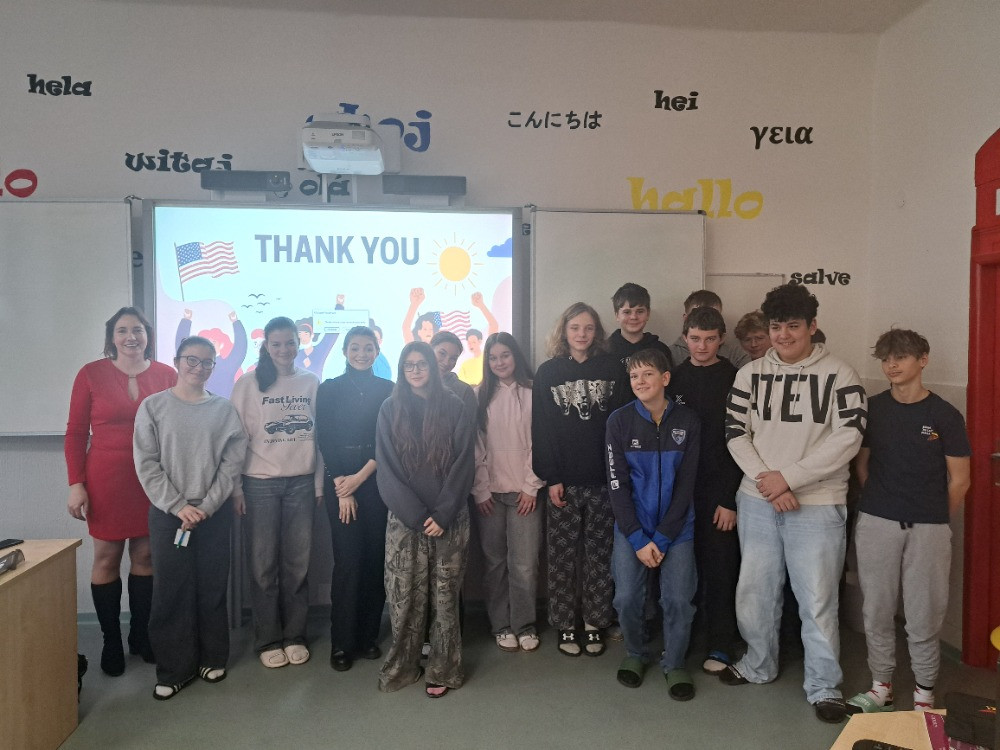 Ve středu 11. 2. se uskutečnilo pokračování workshopu s lektorkami z jazykové školy Enjoy Language, tentokrát pro žáky 7., 8. a 9. třídy. Také starší žáci měli možnost setkat se s rodilou mluvčí z USA a rozšířit si své znalosti o Spojených státech amerických, jejich kultuře i každodenním životě.