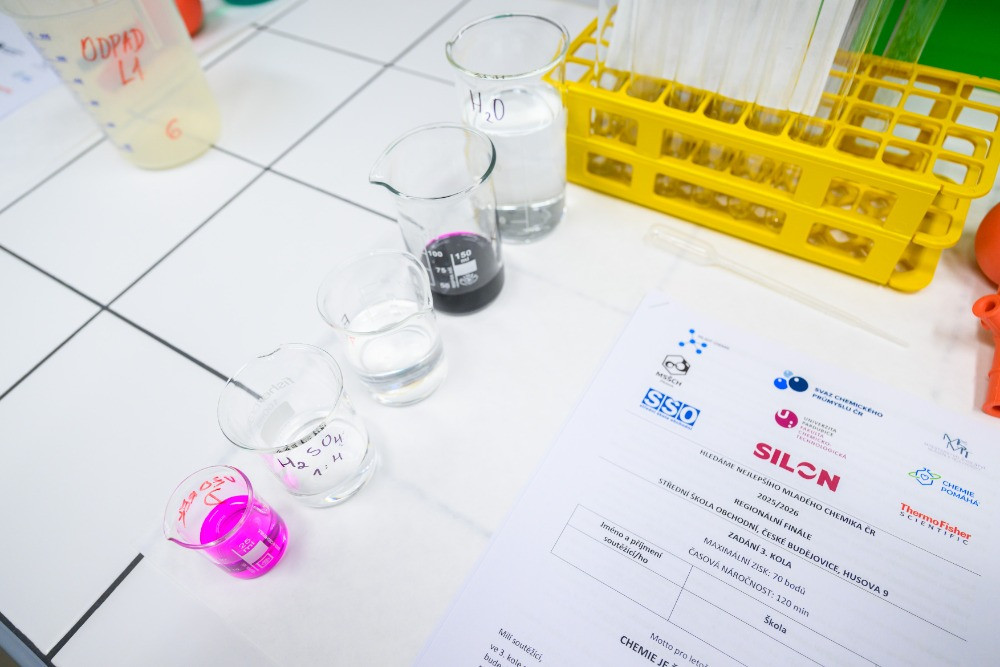 Regionální finále pro Jihočeský a Plzeňský kraj proběhlo 28. ledna 2026 na Střední škole obchodní v Českých Budějovicích. Úkolem žáků bylo stanovit množství manganistanu draselného kolorimetrickou metodou a za pomoci železnatých kationtů. Pro všechny účastníky soutěže připravili žáci 3. a 4. ročníku oboru Aplikovaná chemie efektní chemické a fyzikální pokusy. Vyhlášení výsledků proběhlo v sále Hospodářské komory za přítomnosti ředitelky školy Jarmily Benýškové a děkana Přírodovědecké fakulty Jihočeské university Františka Váchy. Naše žákyně Amálie Kukačová se umístila na 20. místě.