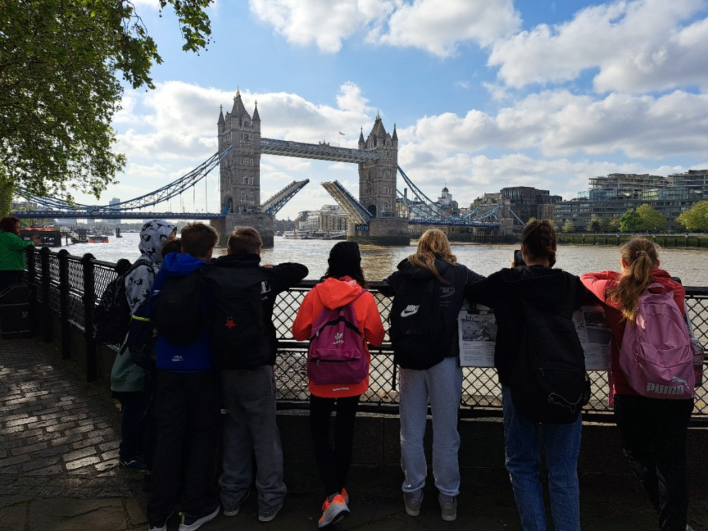 Pátý den patřil Londýnu, na který se všichni velmi těšili. Nejprve jsme pluli lodí po Temži do centra Londýna. Během plavby jsme mohli obdivovat město z jiné perspektivy a viděli jsme řadu známých památek. Velkou pozornost vzbudil především Tower Bridge, který jsme míjeli z bezprostřední blízkosti, a také moderní i historické budovy lemující břehy řeky. Po vystoupení z lodi jsme se vydali na pěší prohlídku centra města. Zamířili jsme k Big Benu a budovám parlamentu ve Westminsteru, kde jsme si vyslechli zajímavosti o britské historii. Pokračovali jsme kolem Westminsterského opatství a přes park směrem k Buckinghamskému paláci, oficiálnímu sídlu britského krále. Během dne jsme navštívili také moderní mrakodrap s vyhlídkou, odkud se nám otevřel krásný panoramatický pohled na celý Londýn. Závěrem programu byla projížďka na London Eye. Pomalu se otáčející kabiny nabídly nádherný výhled na město, řeku Temži i nejznámější památky. Pro mnohé žáky to byl jeden z nejsilnějších zážitků celého výletu.